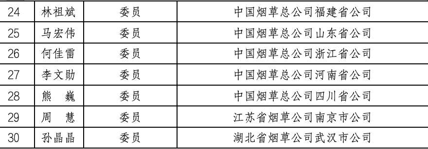 30名委员名单中有来自湖北和诺生物、东莞市鸿馥生物、深圳麦克韦尔科技、深圳市合元科技、深圳雾芯科技、深圳星光点点科技、徕米雾电科技这七家涉电子烟业务公司的成员。