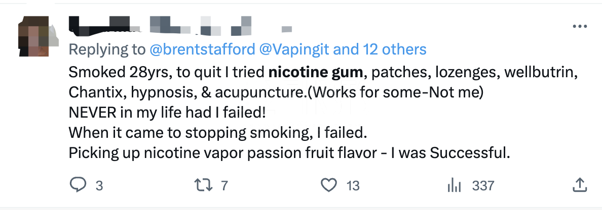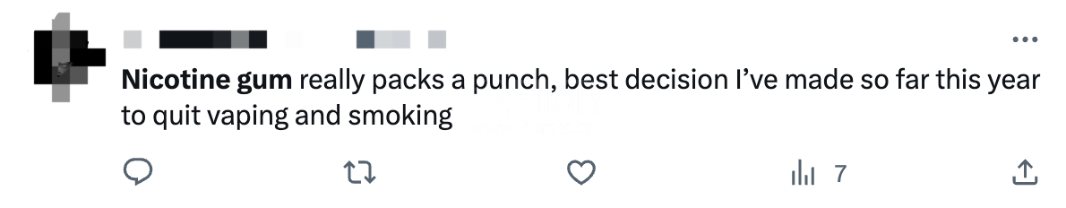 使用尼古丁口香糖的用户在Twitter上分享自己的使用体验|图源:Twitter