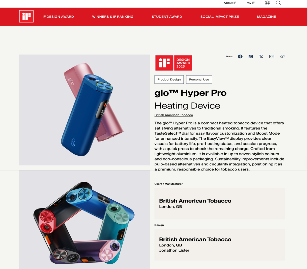 当一款产品被写入年度财报正文,并出现在加热卷烟市场竞争格局的关键转折点上,它就不再仅仅是一次工业设计或工程创新。glo Hyper Pro 的推出,不只是 BAT 的技术进化,更是其在与菲利普莫里斯国际(PMI)长期对峙之后的一次战略突围。它是近年来少见地同时在技术、设计、市场与监管交汇处展开的产品事件。